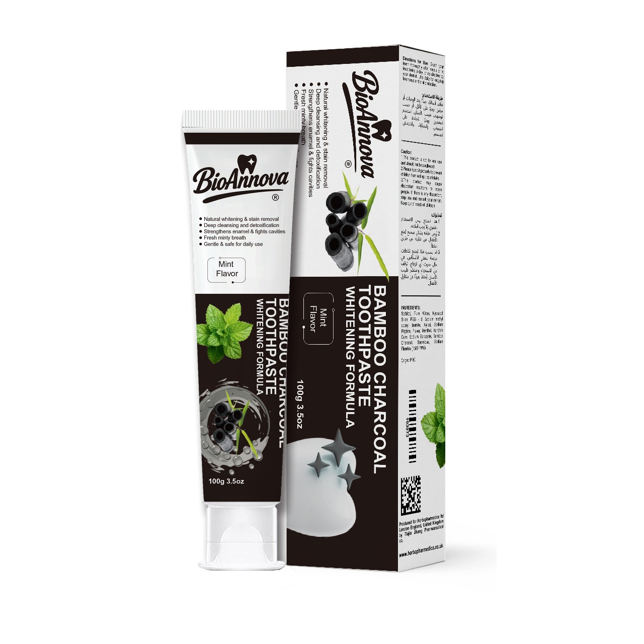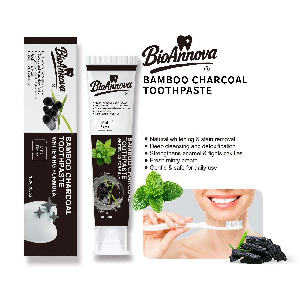 Naturally whitens teeth with bamboo charcoal