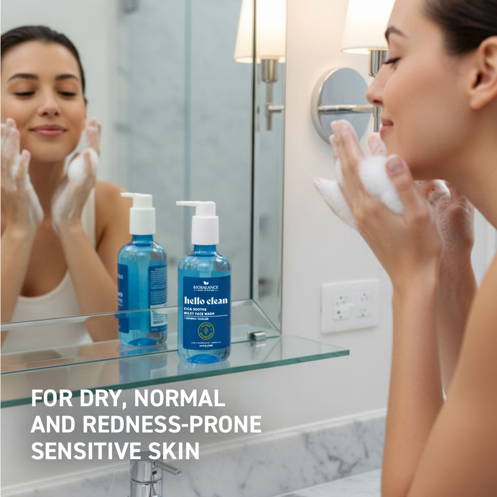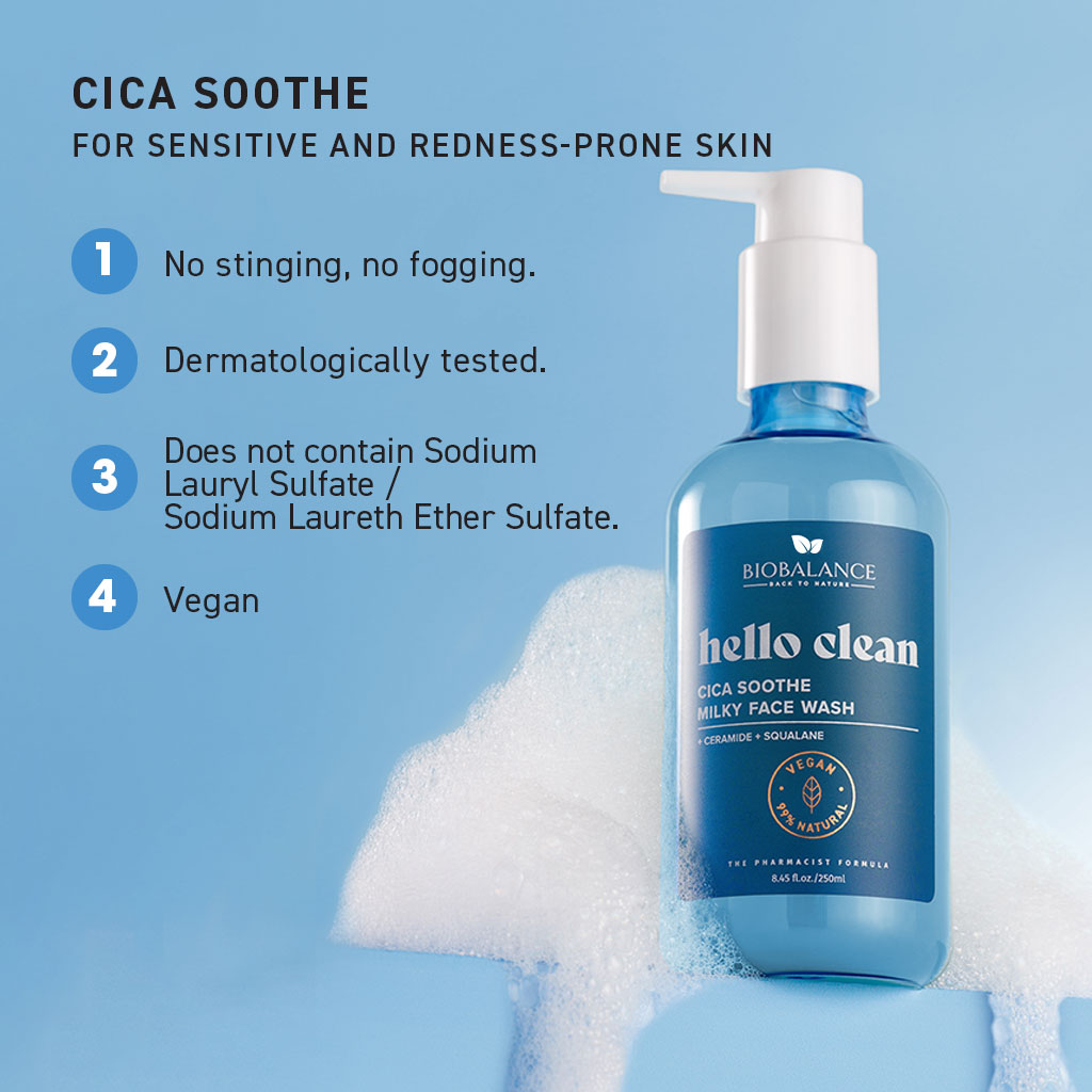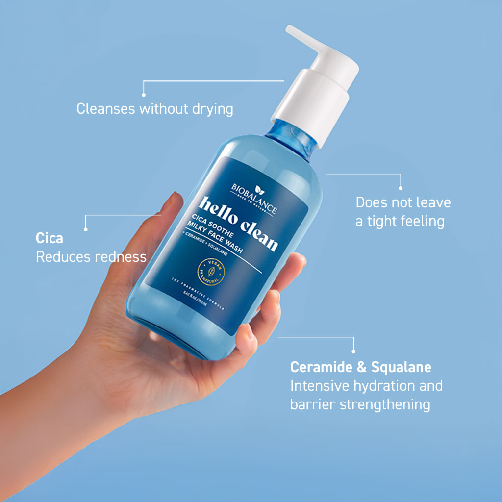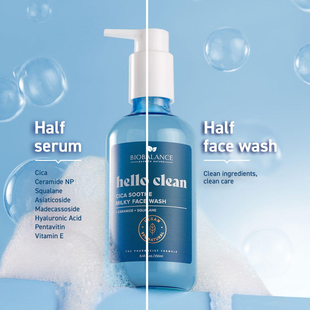 Experience a new level of comfort cleansing with powered by a calming fusion of Cica, Ceramide, and Squalane. This creamy, ultra-gentle formula melts away impurities while actively caring for your skin—leaving it soft, hydrated, and visibly soothed from the very first wash.