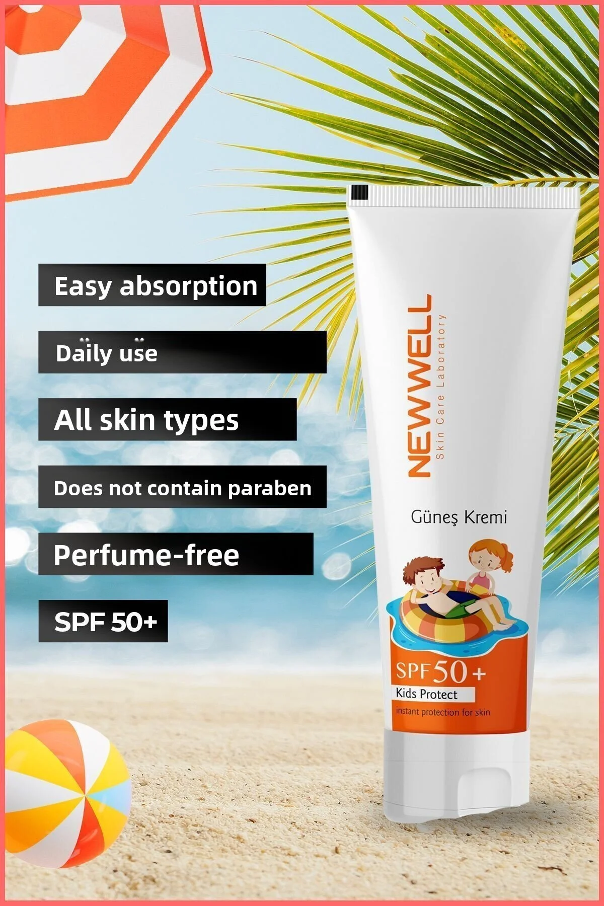 New Well Sunscreen Kids Cream SPF 50+ offers high-level and broad-spectrum protection specially formulated for your child’s delicate skin. Its clean formula, free from parabens and perfumes, minimizes the risk of allergens. It provides complete protection against UVA and UVB rays, preventing irritation and hyperpigmentation. Suitable for daily use, this cream includes all the details for complete and effective sun protection.